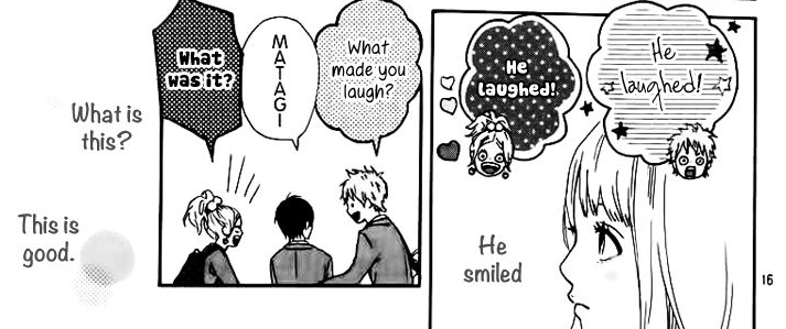 I love the artwork. None of that sparkly-eyed shoujo fluff, the artwork is reminiscent of more mature series such as March Comes in Like a Lion or Kuragehime but with a warm, fuzzy bent rather than the serious dark lines that intense josei like Nana has. It’s evocative and straight to the point.